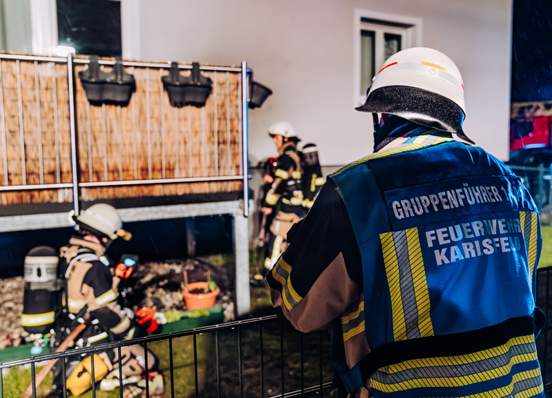 Die Brandreste wurden entfernt und abgelöscht. Zur vollständigen Brandbekämpfung wurde im weiteren Verlauf noch ein Teilbereich der Terassendielen entfernt, um die darunter befindlichen Glutnester noch erreichen zu können. Zur Verhinderung des Wiederaufflammens wurde der betroffene Bereich mit Löschschaum abgedeckt und eine abschließende Kontrolle mit der Wärmebildkamera vorgenommen.