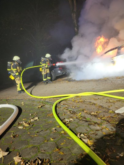 Unter Atemschutz wurde das Feuer durch unsere Einsatzkräfte mithilfe eines C-Rohres kontrolliert abgelöscht und die Motorhaube mit Brechwerkzeug für Nachlöscharbeiten geöffnet. Das Nachbarfahrzeug wurde durch den Brand ebenfalls in Mitleidenschaft gezogen. An beiden Fahrzeugen wurde eine abschließende Kontrolle auf Glutnester mit der Wärmebildkamera durchgeführt.