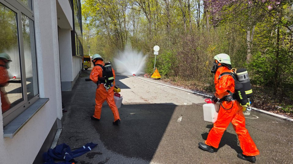 Am Samstag haben wir euch bereits unseren Übungsdienst am Karlsfelder Hallenbad angekündigt – heute gibt es dazu noch ein paar Eindrücke. Der Tag war intensiv, spannend und voller Action. Ausgangspunkt der Übungsalarmierung war ein angenommener Chlorgasaustritt in der Ladezone. Bei der Anlieferung von Nachschub wurde im Szenario eine Flasche umgestoßen, wodurch Gas austrat und ein Arbeiter bewusstlos wurde.