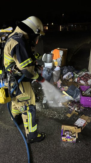 Um 01:52 Uhr wurden aus der Allacher Straße brennende Feuerwerkskörper, bzw. deren Überreste gemeldet. Im Bereich der Altglas-Container war eine geringe Menge an Unrat in Brand geraten. Auch hier kam der Schnellangriff zum Einsatz, es wurde abschließend kontrolliert und die Einsatzstelle an die Polizei übergeben.
