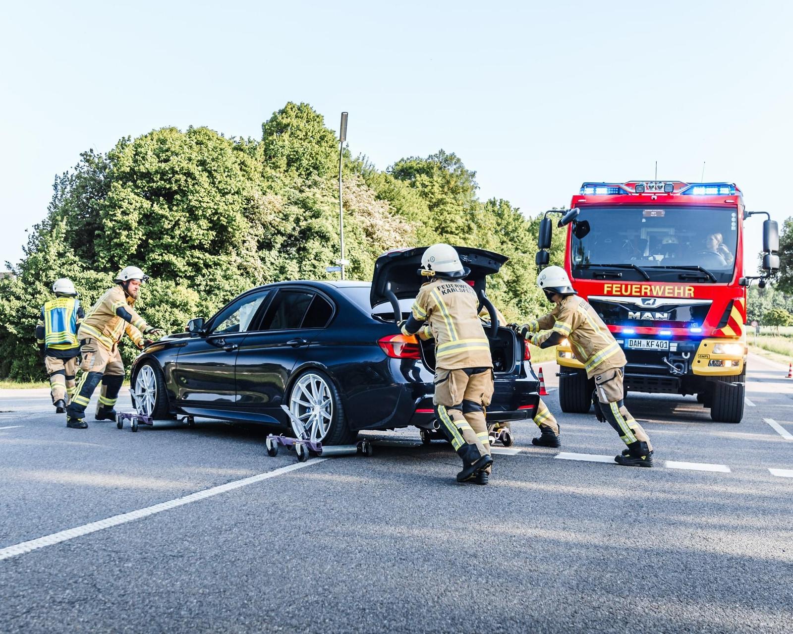 Bei Verkehrsunfällen sichert die Feuerwehr die Unfallstelle, stellt den Brandschutz sicher, versorgt Verletzte und führt technische Rettungsmaßnahmen durch. Mithilfe hydraulischer Rettungsgeräte wie Schere und Spreizer werden eingeklemmte Personen befreit. Weitere Aufgaben sind das Abklemmen von Fahrzeugbatterien, das Binden von auslaufenden Betriebsstoffen und die Unterstützung des Rettungsdienstes – besonders bei schweren oder komplexen Unfallsituationen.